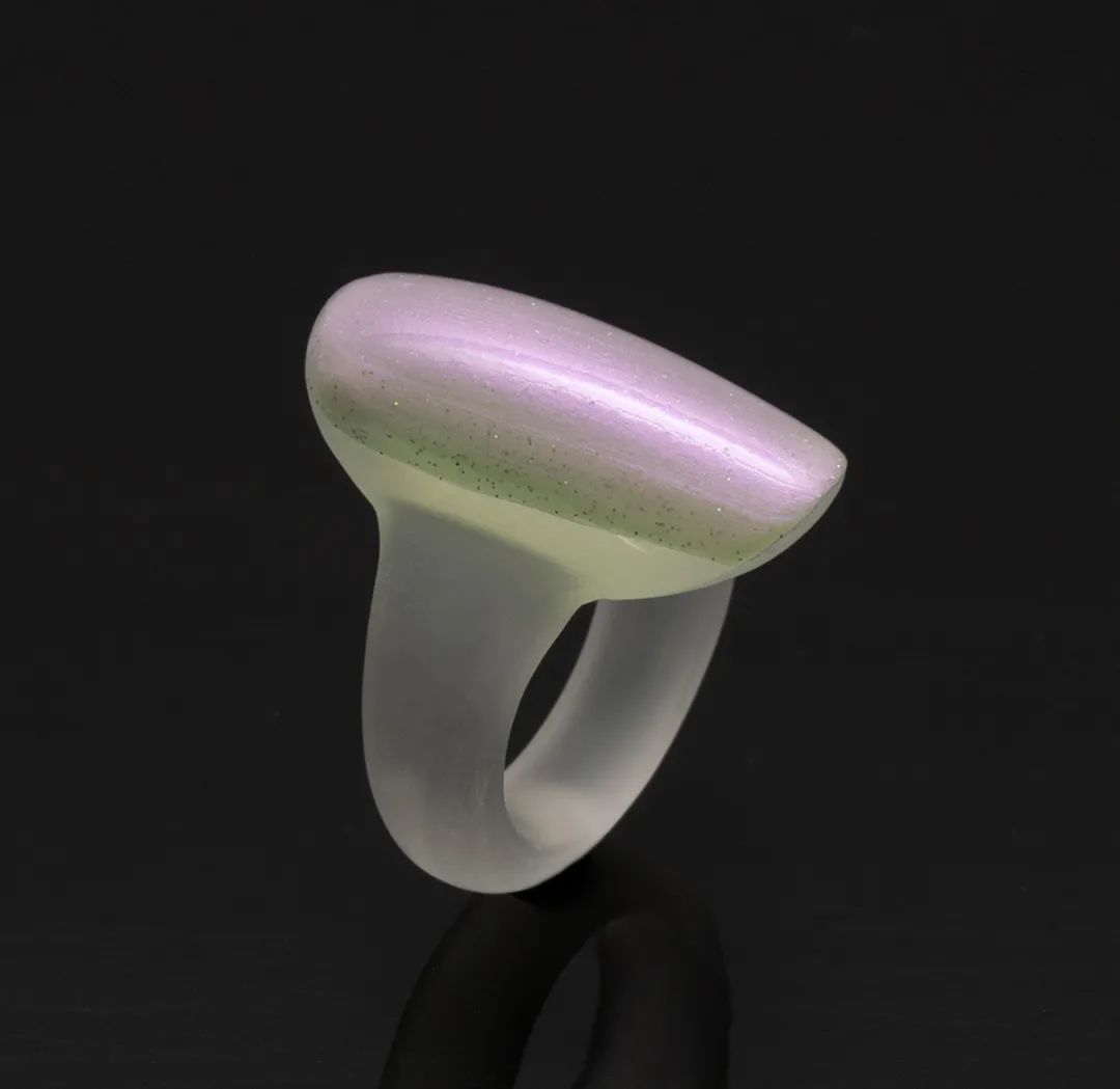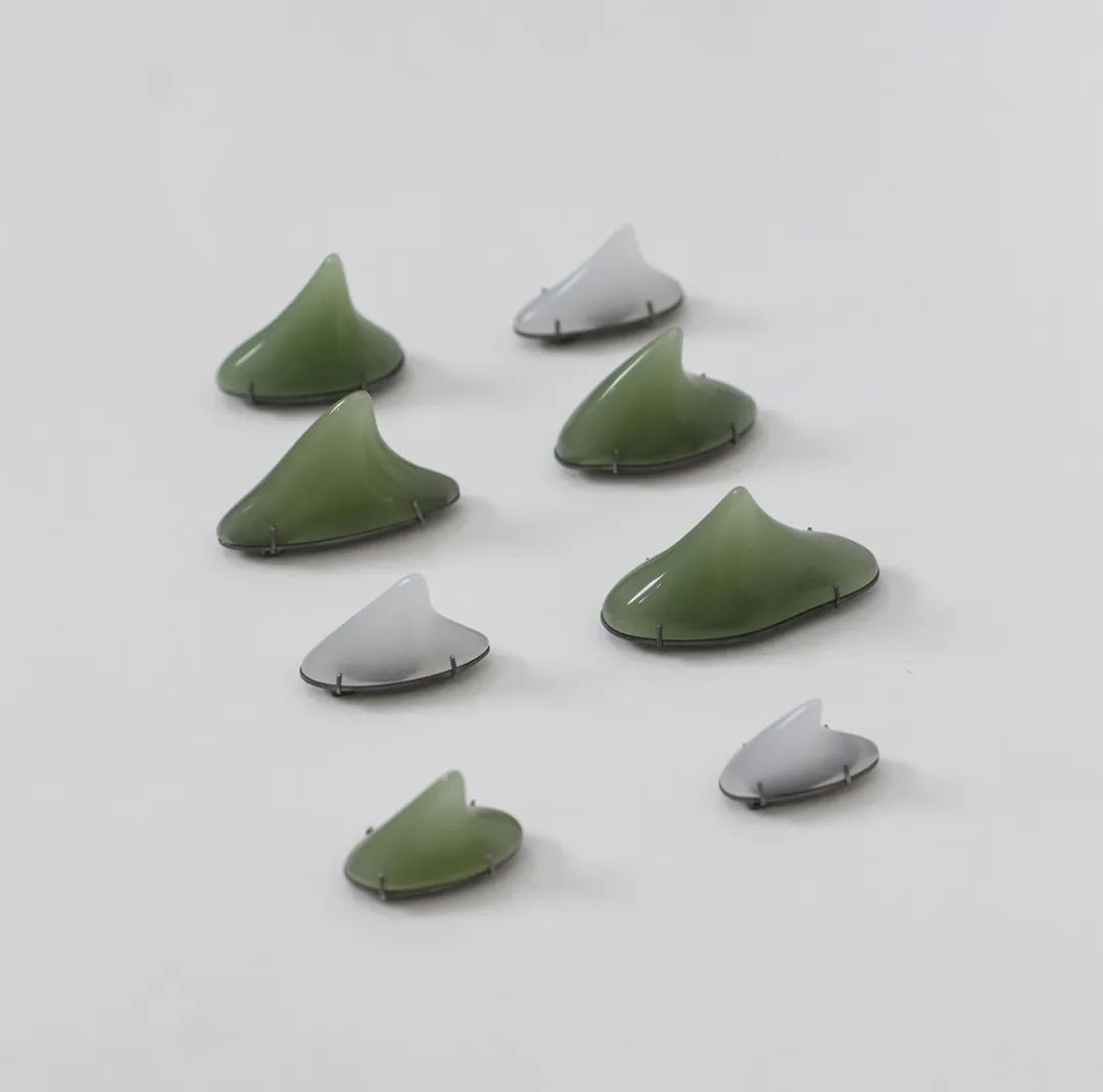 作為一位女性藝術家,小睦作品的氣質雅致中透露著灑脫,自帶幾分風骨。她常借作品描繪“山水”,善用各色石材,因此她的首飾自然的具備了些許東方氣韻。扎實的金工令她可以在游刃間將金屬的可塑性極至展現,然而創作時卻并不拘泥于依賴純手工制作。本次展出的20組首飾作品既貫穿為系列,又各自獨立存在。其中天然與人造材料依次出現,同時包含多種材質3D打印技術,傳統與數字造物方式并用。多年來首飾設計經驗的積累,使小睦能夠充分調動技術的可能性,使作品在松弛卻精準的狀態下產出。所謂“將任何技術都當作是手中的一把錘子”,在此得到豐富的詮釋。