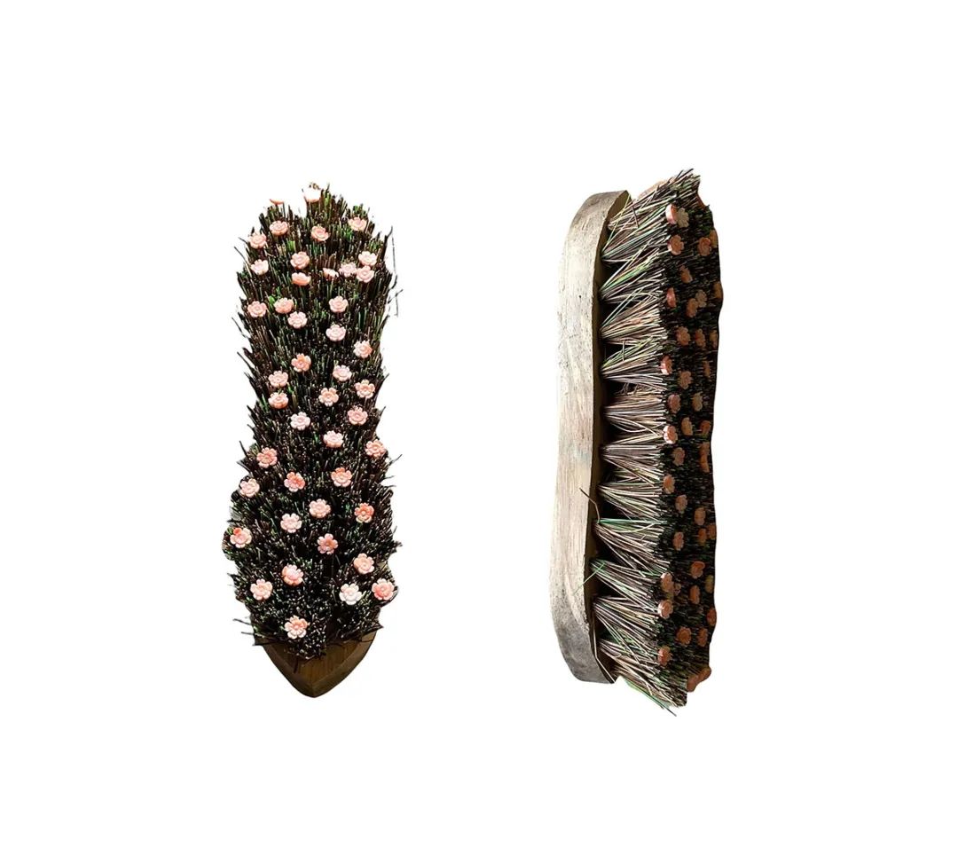 Handmade wood, natural and artificial fibres, carved pink and white coral flowers