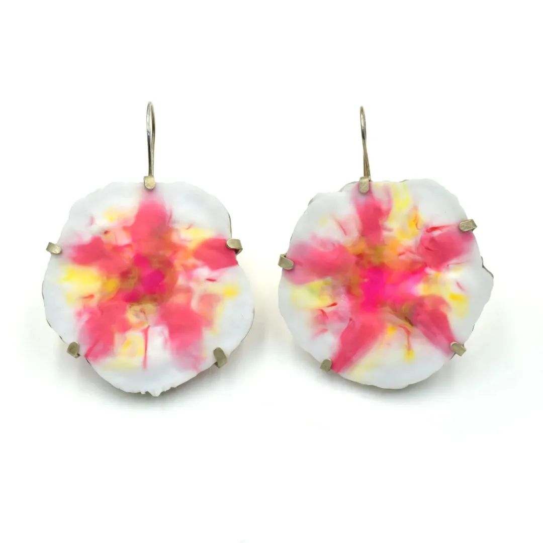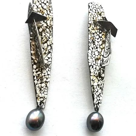 925 silver, brass, stainless steel, enamel, cubic zirconia, and found objects
