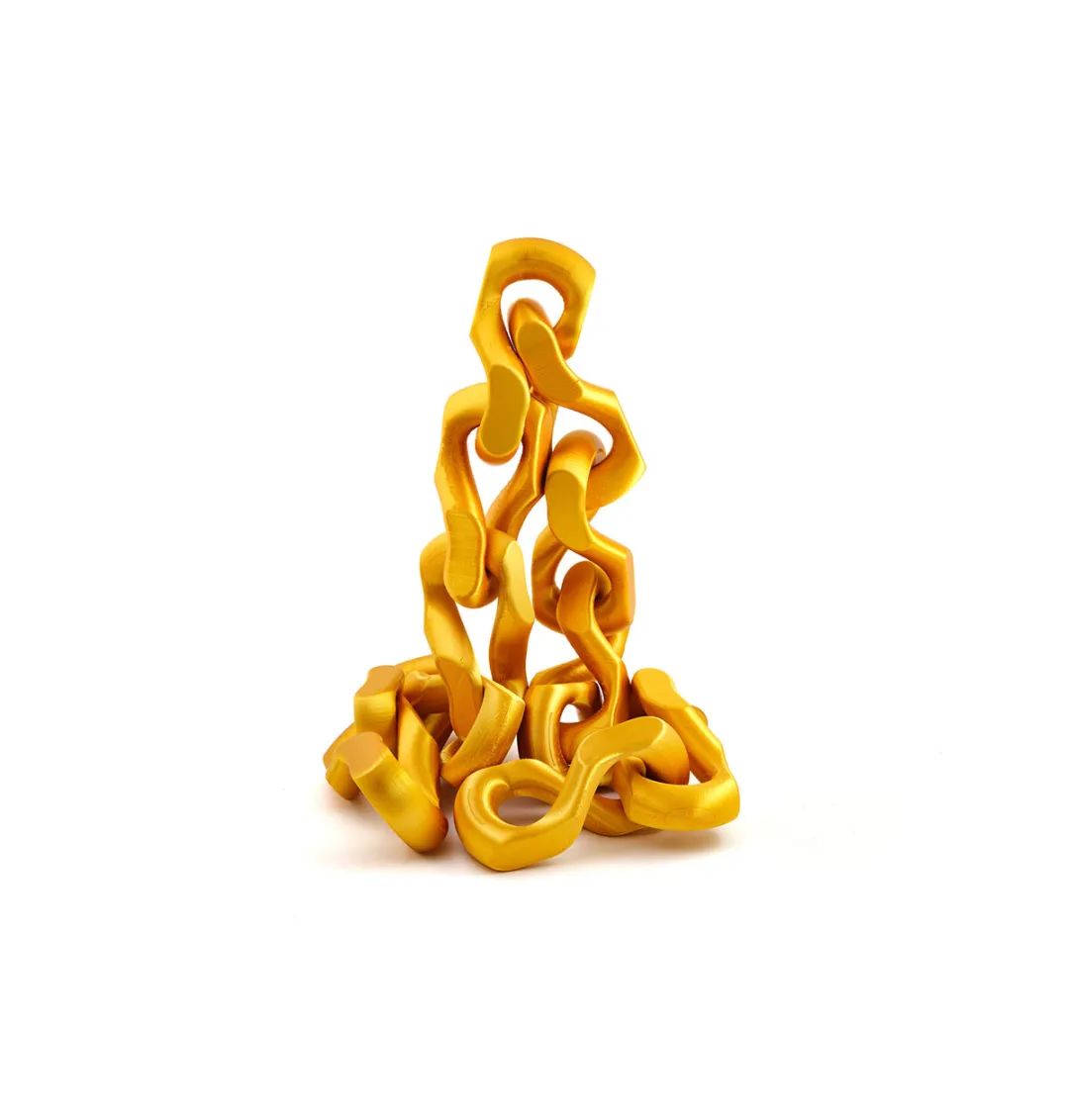 無題是一系列相對簡單的吊墜和戒指,但意義深遠。每件藝術品均采用銀或 24 克拉金鑲嵌在銅合金上的設計。這些嵌入的形式是無辜或無意義模式的投影,旨在完全無害且不可能冒犯任何人。