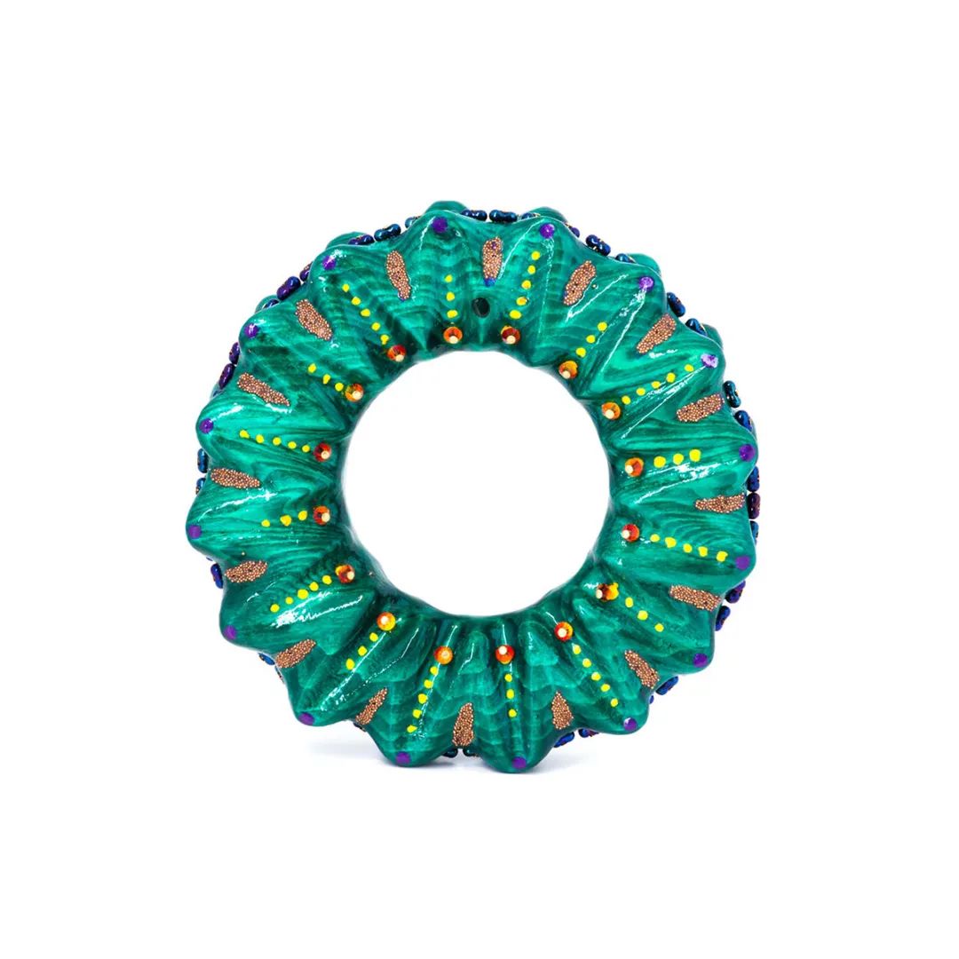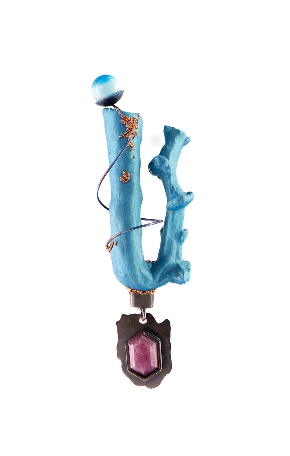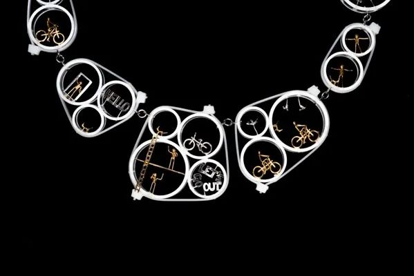 Maeda Asagi 精心打造的雕塑也是珠寶。她采用木材、有機玻璃、樹脂、琺瑯、銀、金、半寶石和寶石制成,在作品中雕刻和繪畫,講述了有關家庭和社會的深思熟慮的敘述。森上博物館畫廊將展出 50 多件作品。她的標志性作品《星球上的故事》是一件可佩戴的藝術品,描繪了 28 個國家的 32 個城市,由八枚可拆卸胸針組成一條項鏈。