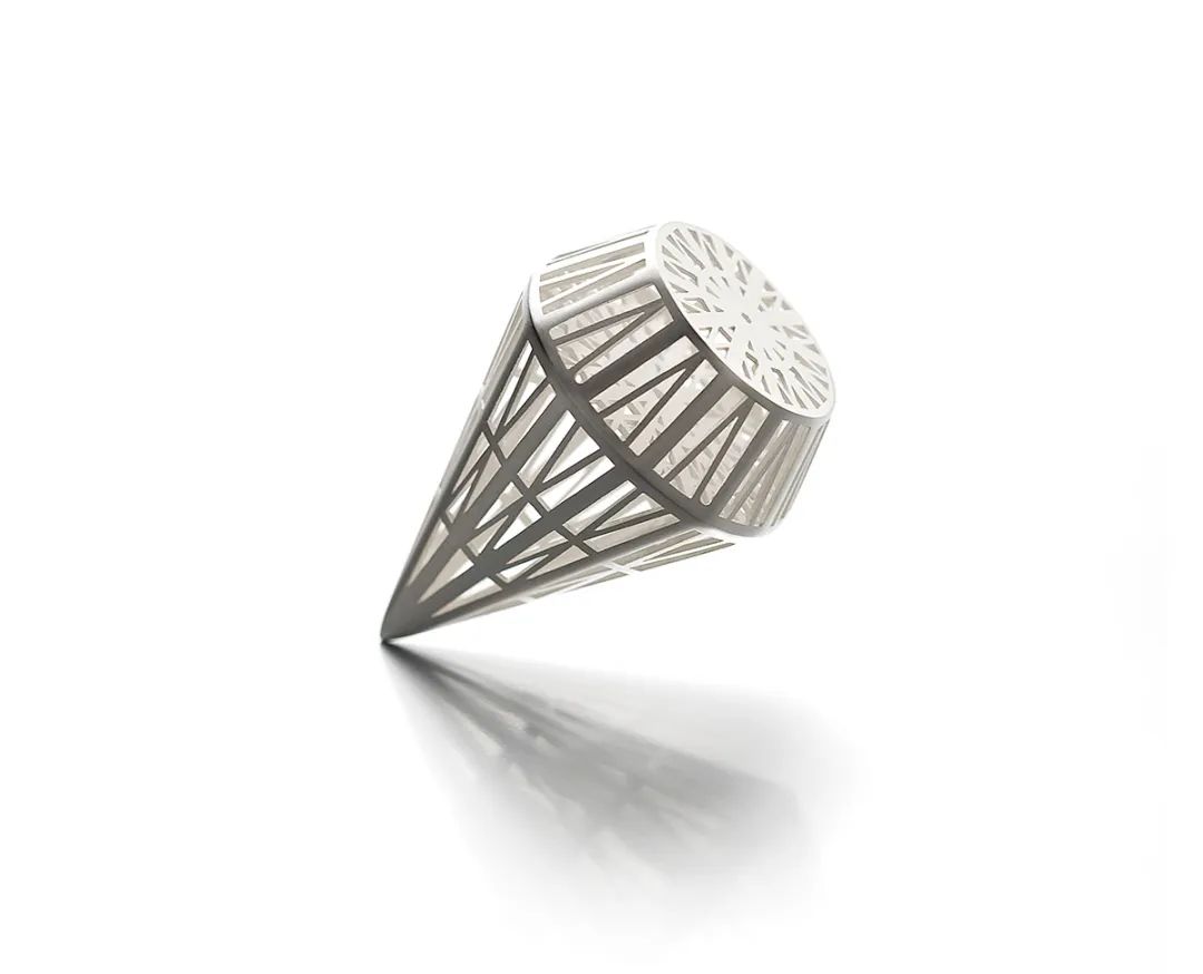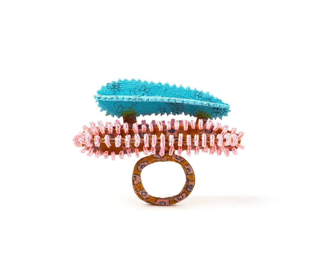 參觀 Funaki 和墨爾本設計博覽會的游客將會熟悉 Jiro 的 Holon 戒指,以及它們明亮的色彩和光澤。除了對該系列的進一步探索之外,本次展覽還展出了 Jiro 最近的 Oculus 系列中的新作品,其中專門制作的微小鏡片創造出復雜、浪漫且極其誘人的珠寶。