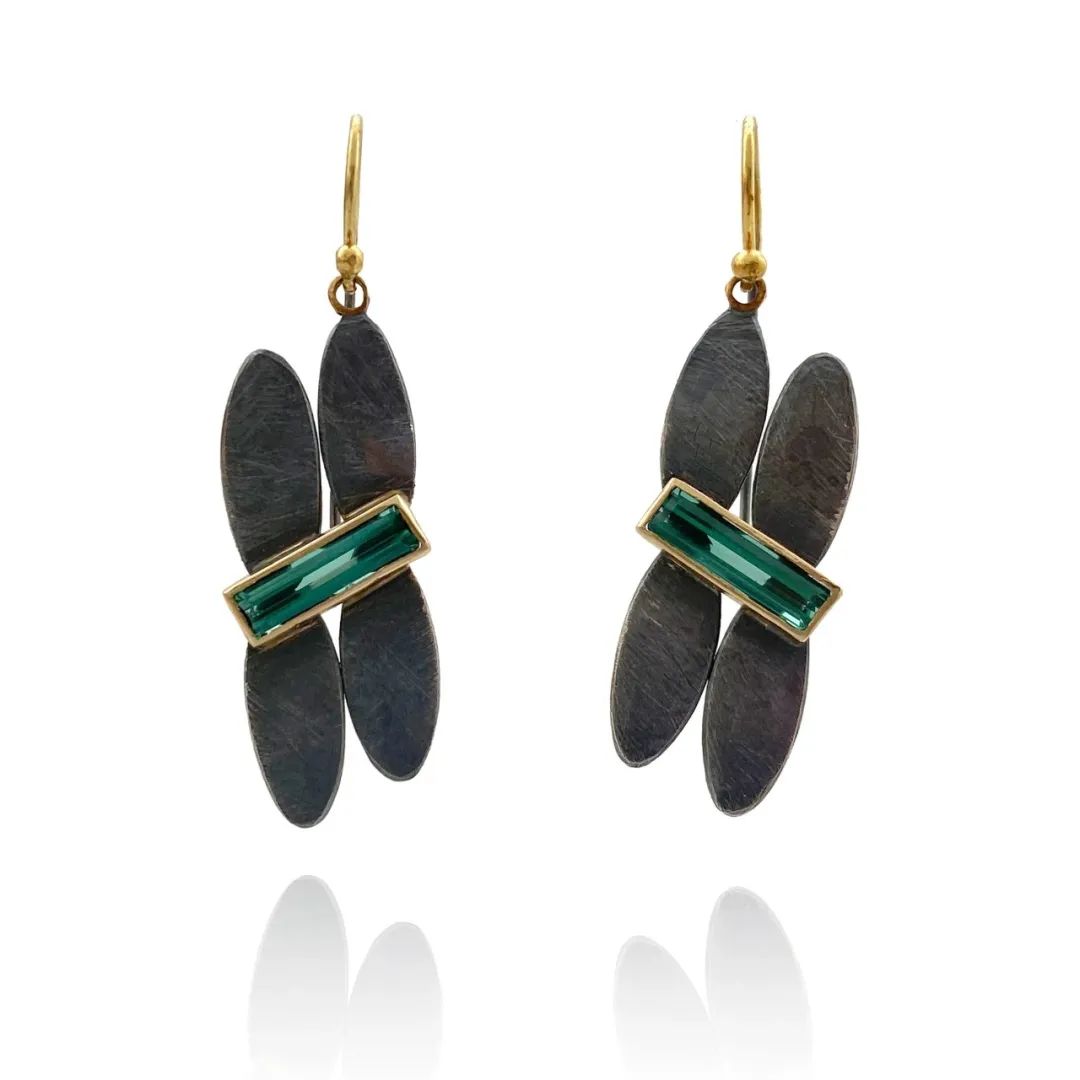 Materials: Tourmaline, 18k Gold, Oxidized Sterling Silver