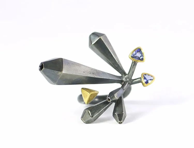 我創作的雕塑作品充滿存在感,靈感來自我周圍女性的豐富故事。原始紋理、天然寶石和優質金屬以保留自然精髓的方式結合在一起。