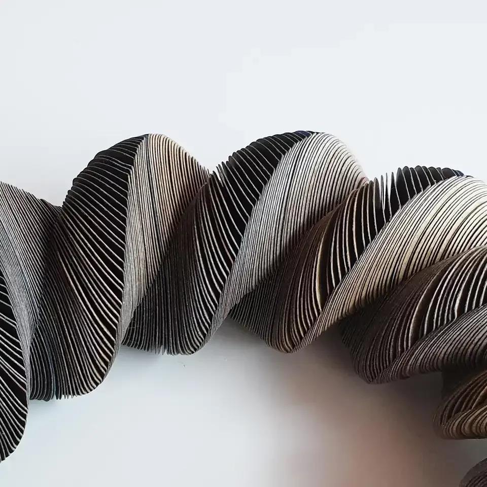 Nel 的作品靈感來源于植物世界的韻律節(jié)奏和結(jié)構(gòu),她認(rèn)為紙張具有許多優(yōu)良品質(zhì),對(duì)于佩帶者來說,尤其是紙的觸摸感。多年來,她采用最優(yōu)秀品質(zhì)的紙來創(chuàng)作首飾,采用簡(jiǎn)約的美學(xué)方法,以模塊化的元素組合出連續(xù)的形狀。