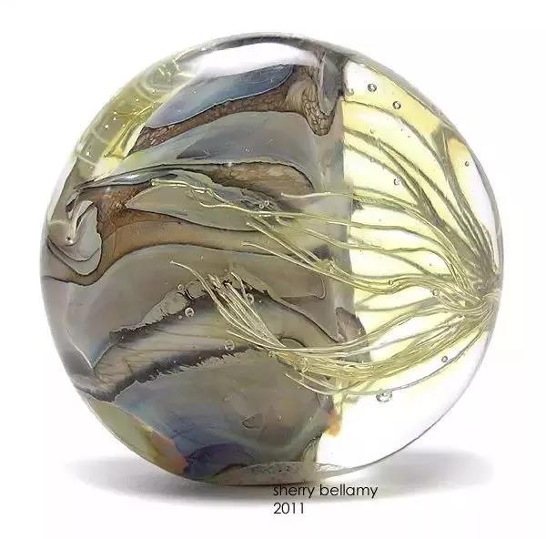 現(xiàn)年60歲的Bellamy是玻璃首飾界的一個傳奇。她為人低調(diào),但其作品在“The Flow”,"Bead Review"等眾多學術(shù)期刊上被接連報道,也被藝術(shù)家Kristina Logan編寫的被稱為玻璃首飾圣經(jīng)的"1000 Beads"一書收錄。