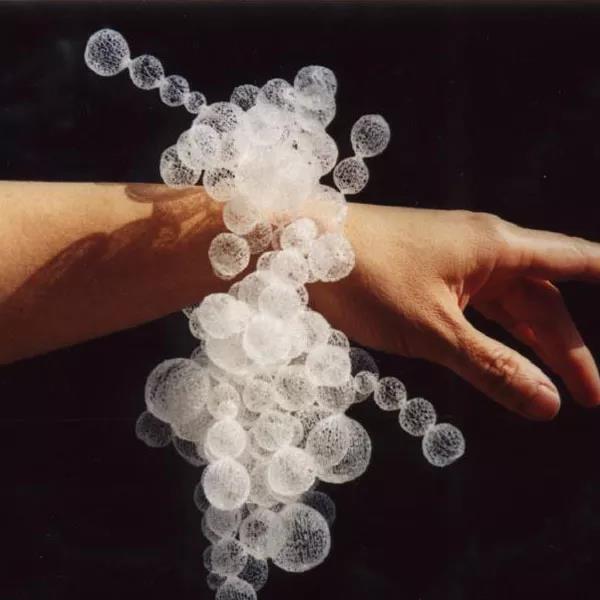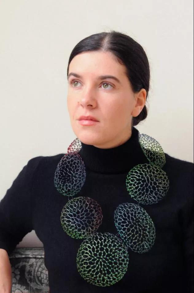 “我對創(chuàng)作新作品的過程很著迷。項鏈,胸針,戒指和各種血管,不透明或在虛幻的色調(diào)的進展:每一項都是透明、結(jié)構(gòu)和尺度的實驗。珠寶看起來像玻璃一樣易碎,像羽毛一樣輕,但材料和設(shè)計都是堅固的。”