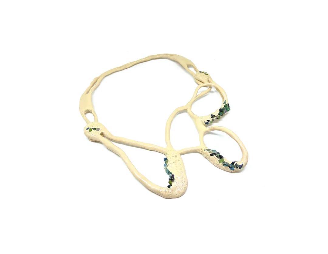 “我先是對蘑菇這一生物產(chǎn)生了好奇,我對蘑菇傘蓋之下相互交織的奇異美妙的形態(tài)著迷。生長在狹小空間的蘑菇啟發(fā)了我創(chuàng)作以“增殖形象”為主題的珠寶。隨著我了解蘑菇在自然界中的生長和作用,我對它們也越來越感興趣。我們離真菌如此之近,以至于我們甚至都沒有注意到它們。菌絲體,也可以看作是蘑菇的根,在我們腳下的地面上蔓延出難以想象的范圍。蘑菇,仍然是具有許多科學(xué)未解奧秘的實體,它在我的工作中占有重要地位,自從我成為首飾藝術(shù)家以來,我便一直被蘑菇的特征影響并因此創(chuàng)作一系列的作品。”