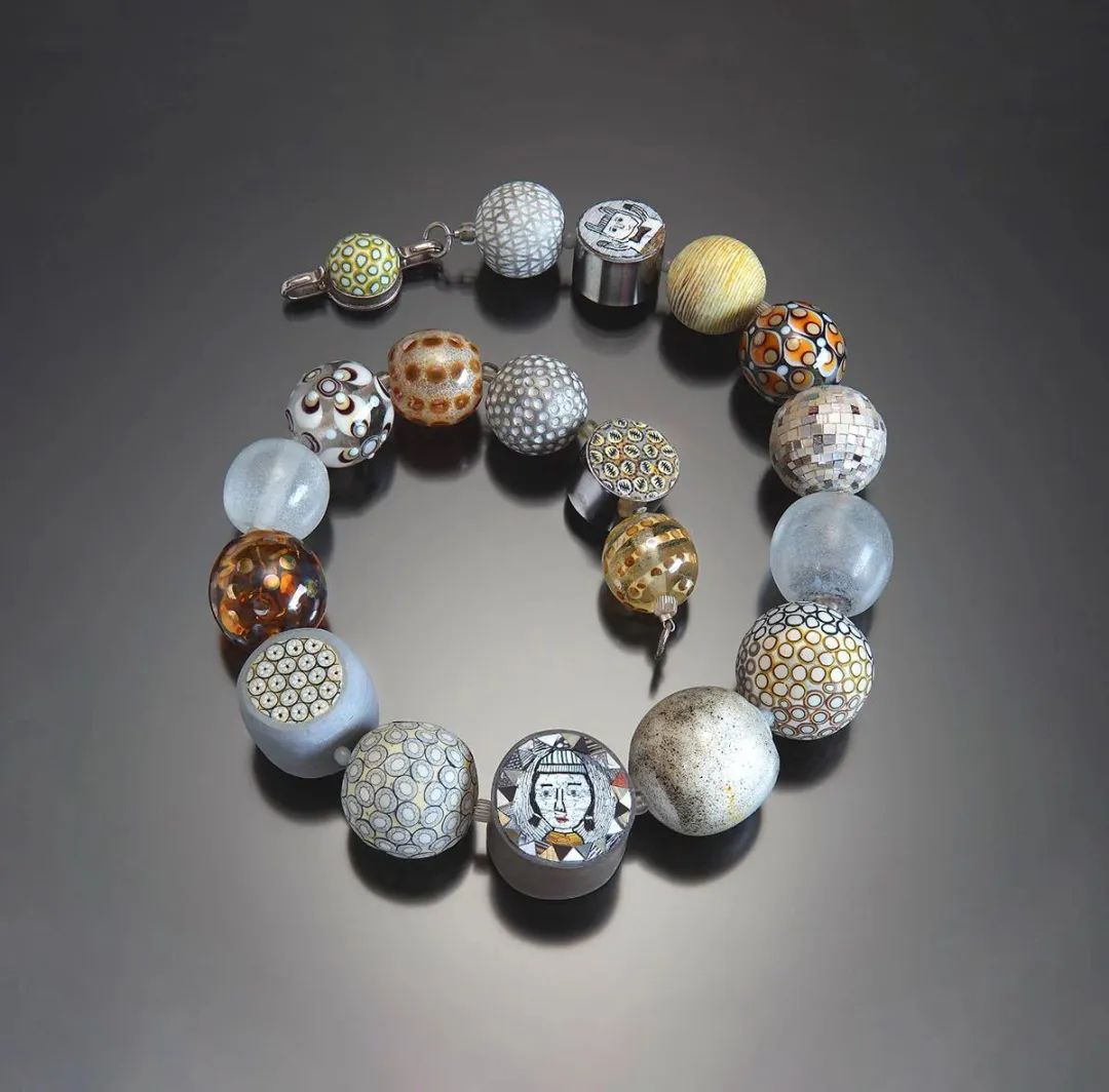 Glass beads by Dan Adams, sterling silver clasp, old spacer beads