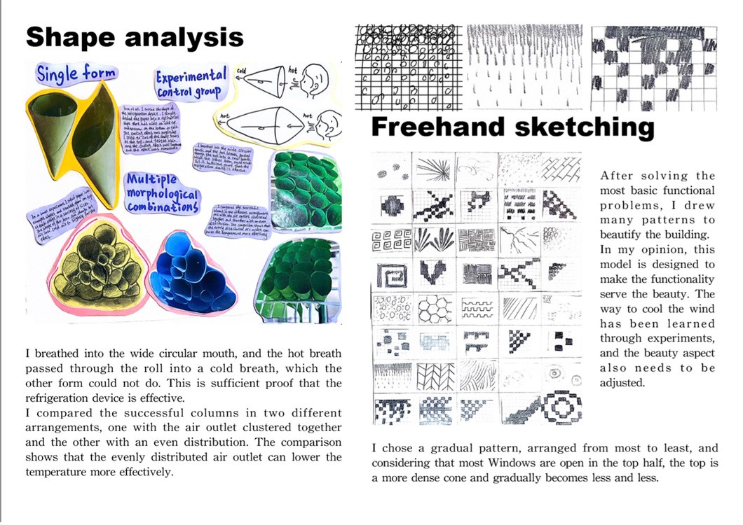 " Movement " is the last completed design project. For the first time, we want to design a new ventilation and cooling system for the building space from the functional components provided for the building. While having powerful functions, it is also hoped that this part of the design can bring aesthetic beauty to the building. This device is placed in a ventilation window and uses several horn structures of different sizes to quickly cool down the natural wind blowing through. The overall shape of the device is also very dynamic.