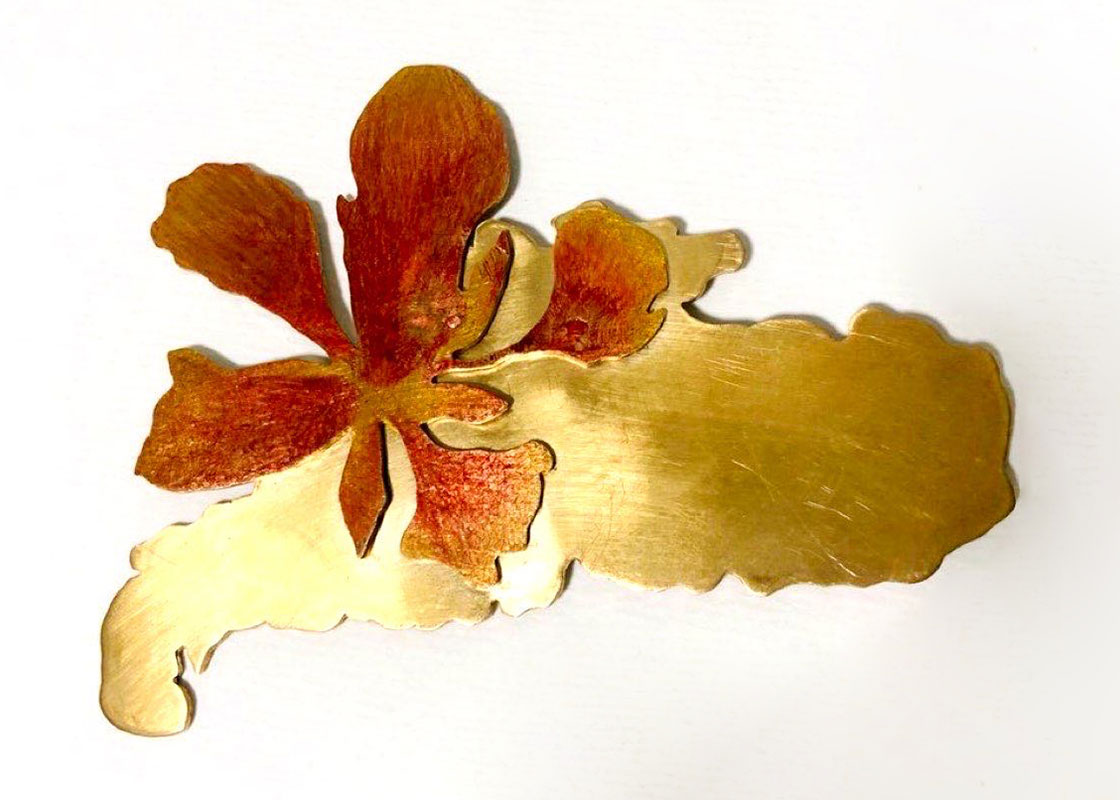 I try to break the tradition of only using metal as the material to make jewellery. There is an adventure of materials behind each piece of jewellery. Exploring the possibility of different materials can bring the spark of collision. For example, in the series of <Human cell>, I use resin as the main material and mix it with propylene, colouring agent, cold enamel and liquid resin to create a fantastic visual effect. In my artwork <Maps>, I use colour pencil to colour the copper plate, which enhances the richness of the colour and the beauty of the picture.