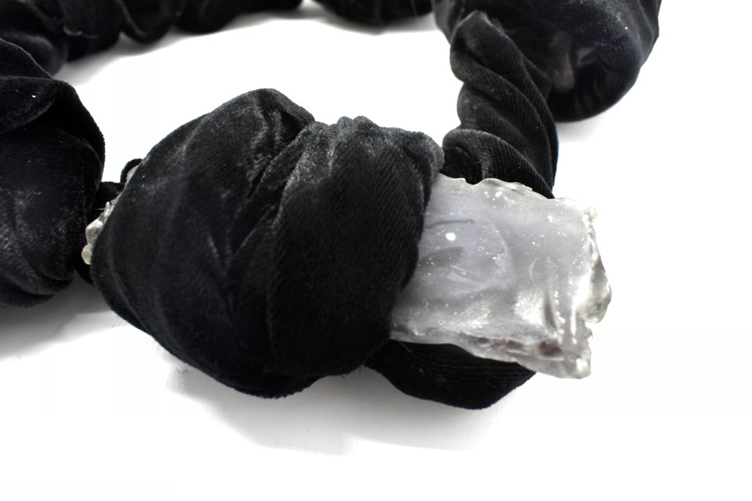 Black II Necklace UV Glue, Velvet Cloth, Gold Thread, Acrylic size: 41*32cm 黑II 項鏈 UV膠,天鵝絨布,金線,亞克力 41*23厘米;